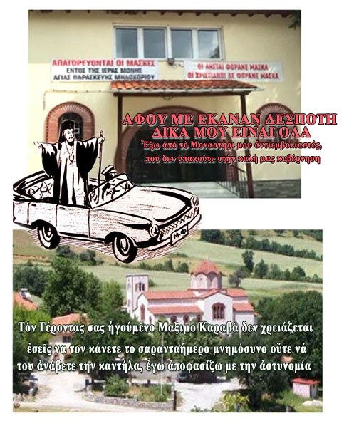Τήν κοσμική ἐξουσία τὴν ἔχει με το μέρος του, τον Θεό δεν τον ἔχει. Αὐτὸς ὁ ἀθεόφοβος ἔκανε τρισάγιο στον τάφο τοῦ π. Μαξιμου Καραβᾶ, με 9 ἱερεῖς!!!!!! Ἴσως και κάποιοι ἄλλοι νὰ ἔκαναν ἐρευνα μέσα στο μοναστήρι και στο ναό, ποὺ ἄλλος ἦταν ὁ νοικοκύρης.