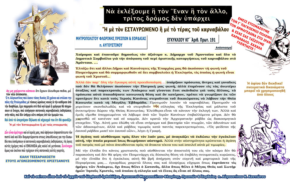 Ἐλευθεροι νὰ κάνουν ἐκλογή ἢ μὲ τὸ ΧΡΙΣΤΟ ἢ με τα καρναβάλια
