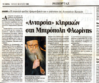 (Μαζεύουν ὑπογραφές γιὰ τὴν ἀντικατάστασιν του Μητροπολίτου Φλωρίνης Αυγουστινου μὲ τὸν π. Θεόκλητο)