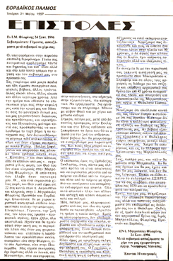 Ἐδημοσεύθη στὴν ἐφημερίδα ΕΟΡΔΑΪΚΟΣ ΠΑΛΜΟΣ” Τετάρτη 21 Μαϊου 1997, κατόπιν ἐντολῆς τοῦ σεβάσμιου ἱεράρχη Αυγουστινου, γιὰ νὰ ἐνημερωθῆ τὸ ποιμνιό του. Διαβᾶστε ἀπόσπασμα τῆς ἐπιστολῆς. Read more »