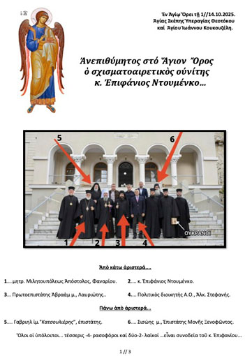 «Ἀνεπιθυμητος στο Ἅγιον Ὄρος ὁ σχισματοαιρετικος οὐνιτης κ. Ἐπιφανιος Ντουμενκο…» της 1//14.10.2025.