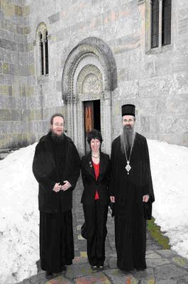 Ο Τοποτηρητής της επισκοπής Ράσκας και Πριζρένης, επίσκοπος Αθανάσιος Γιέβτιτς το Πάσχα 2010 πήγε στην Πριζρένη για να τελέσει τον Εσπερινό της Αγάπης. Εκεί συναντήτηκε με το Ρωμαιοκαθολικό Επίσκοπο του Κοσόβου Dode Gjergji, Αλβανό το γένος. Στην φωτογραφία βλέπουμε με πόση χαρά αγκαλιάζει τον Dode ο Τοποτηρητής, ντυμένος μάλιστα στο ωμοφόριο και φορώντας τη αρχιερατική Μίτρα (είναι Μίτρα την οποία πάντα φοράει). Στη φωτογραφία διακρίνεται και ο βοηθός Επίσκοπος Θεόδοσιος Σίμπαλιτς, ο οποίος δεν κρύβει τον ενθουσιασμό του για τον εγκάρδιο εναγκαλισμό των δύο «επισκόπων». Ο Dode Gjergji, όμως……αναγνωρίζει το Κόσοβο ως ανεξάρτητο κράτος, από την διακήρυξη τον Φεβρουάριο 2008 και εως σήμερα.