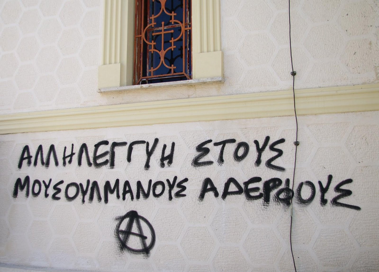 «Θέλουμε τζαμί και στο Αίγιο-Αναρχικοί και Μετανάστες», «Αλληλεγγύη στους Μουσουλμάνους αδελφούς» αλλά και «Γ*μώ την Ορθοδοξία και την Ελλάδα» και «Σκ*τά στις εκκλησίες», γράφτηκαν στους τοίχους και στο καμπαναριό της Αγίας Άννας, της «γιαγιάς των προσφύγων» όπως αποκαλείται από τους πιστούς, προκαλώντας φρίκη και αποτροπιασμό. Φυσικά, όπως κάθε τέτοια άνανδρη πράξη, το περιστατικό συνέβη νύχτα, από χέρια δίχως ταυτότητα και δίχως πραγματικό θάρρος γνώμης. Οι ενορίτες έσπευσαν και μέχρι το απόγευμα είχαν σβήσει τη μαυρίλα από τους τοίχους του Ιερού Ναού